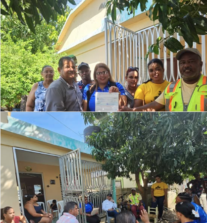 En el día de hoy, el alcalde municipal, señor Félix Marte, acompañado de la tesorera del Ayuntamiento, señora Doris Peña, realizó la entrega oficial de la primera partida de los fondos destinados a la construcción de aceras y contenes en el barrio John Luis, obra que forma parte del Presupuesto Participativo.