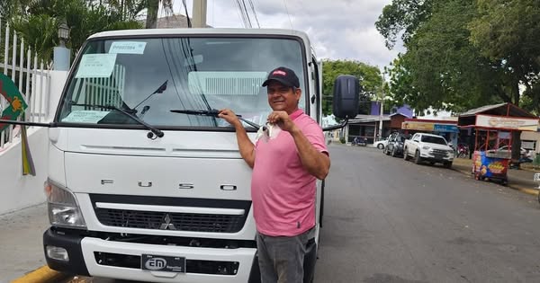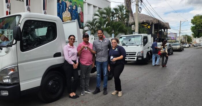 Nuestro Alcalde Félix Marte, recibiendo 2 de los nuevos camiones que servirán en la recogida de basura de nuestro municipio.